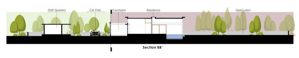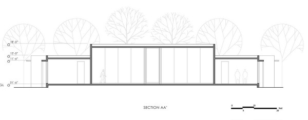Основным требованием заказчика было сделать конструкцию дома "невидимой". В центре внимания должна быть коллекция произведений искусства и открытый ландшафт. Это означало, что авторам нужно было одновременно иметь большие проёмы и большие поверхности стен. Структура должна была отойти на второй план и сыграть роль "холста", на который клиент должен был добавить "характер и цвет" посредством своей коллекции произведений искусства.