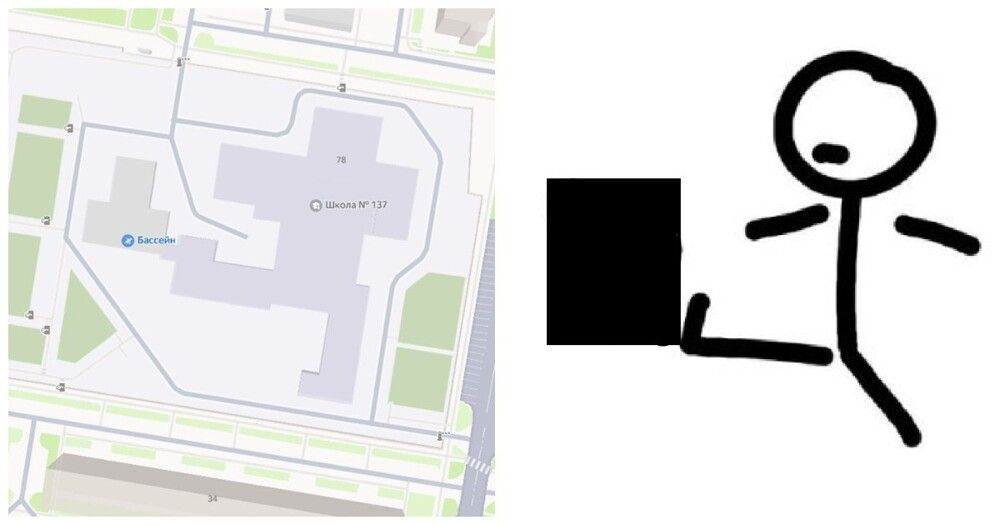 Жители Барнаула присмотрелись к карте города и увидели на ней якобы уникальную архитектурную пасхалку в виде пинающего половой орган человечка. Некоторые уверены, что архитектор здания школы № 137 с максимальной точностью пытался скопировать мем "Планы на день", с нарисованным от руки человечком, который ничего не планирует делать, скажем так.Горожане считают, что архитектор вложил в проект "идею, о том, что ученики там просто будут пинать...". Примечательно, что школу построили ещё в 2021 году. Однако её вид на картах привлёк внимание людей только сейчас.