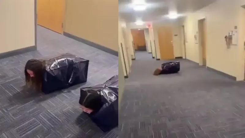 Девушки, отбросив бумаги и калькуляторы, забрались в огромные сумки, оставив снаружи только головы, словно любопытные суслики, высунувшиеся из нор.