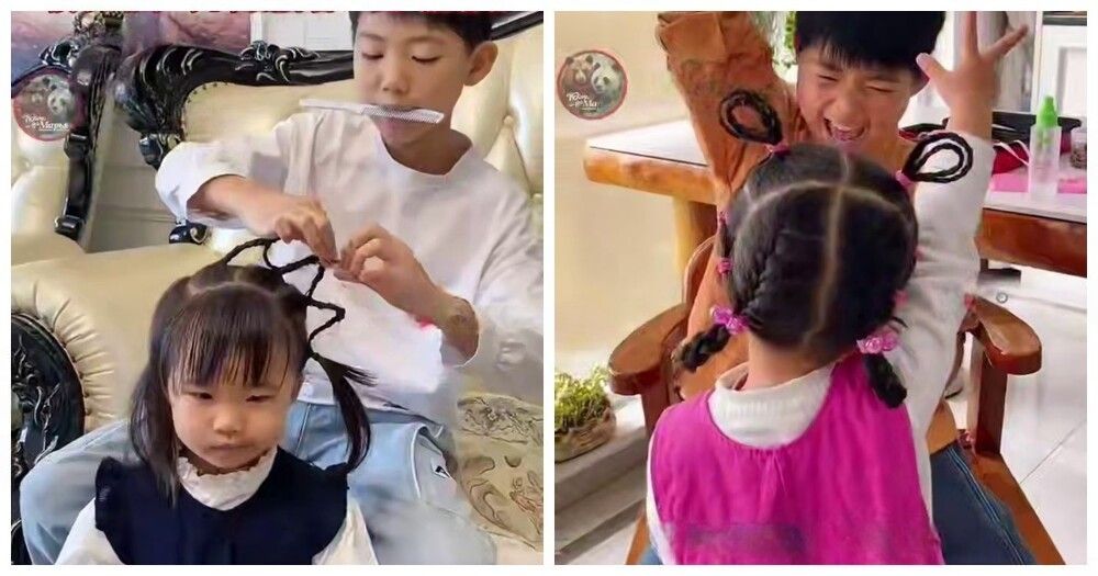 Перед началом работы Хуан аккуратно смачивает волосы сестры водой из лейки, чтобы сделать их более послушными. Расческу он держит во рту, как опытный парикмахер, а под рукой всегда есть коробка с яркими резинками и заколками. Прически получаются очень красивыми и оригинальными: тут и бабочки, и сердечки, и даже корона из волос.