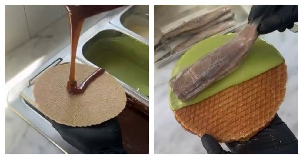 В кафе в Амстердаме подают вафли с карамелью и селёдкой. Вот как выглядит это блюдо.
