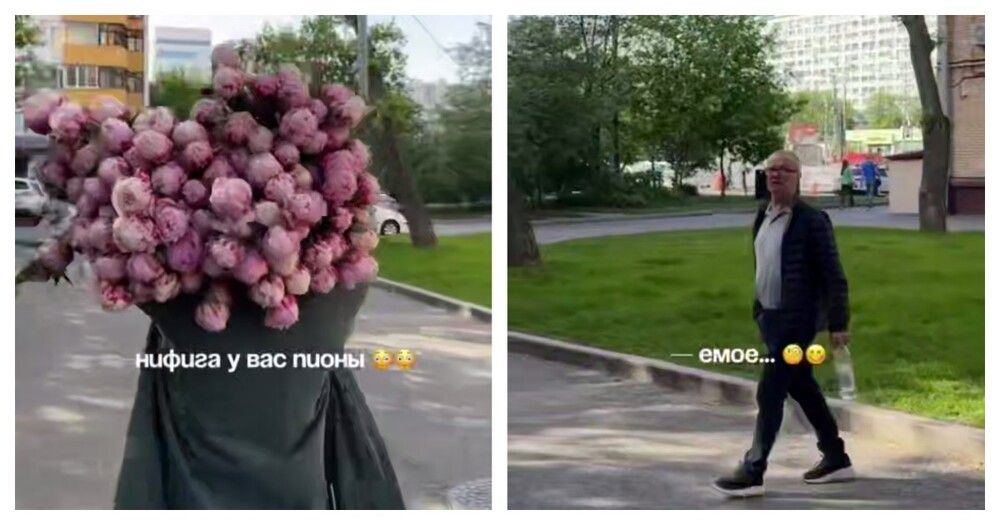 К парню, который нёс пионы по улице, подошел нетрезвый мужчина. Незнакомец восхитился количеством цветов.