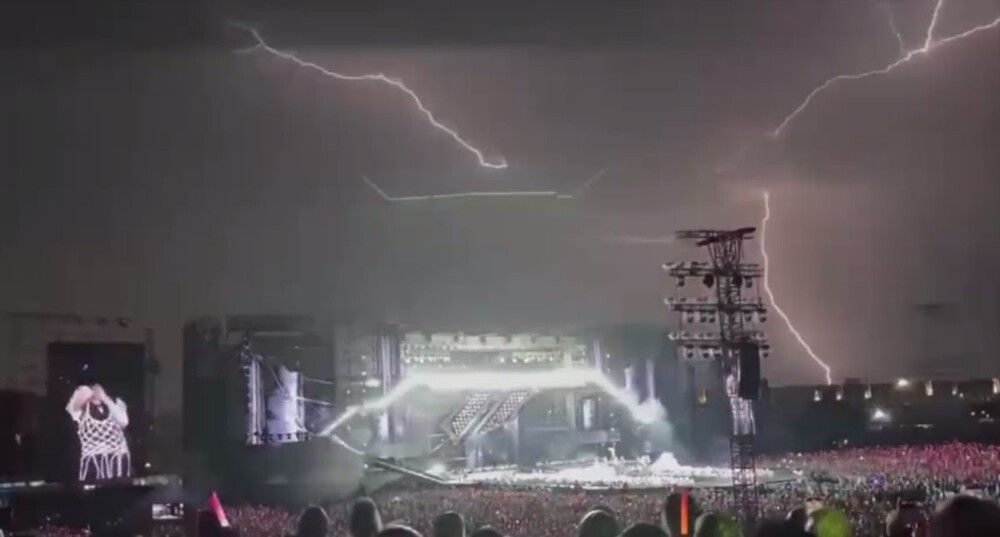 Молния могла в любой момент ударить в аппаратуру или людей. К счастью, обошлось без пострадавших.