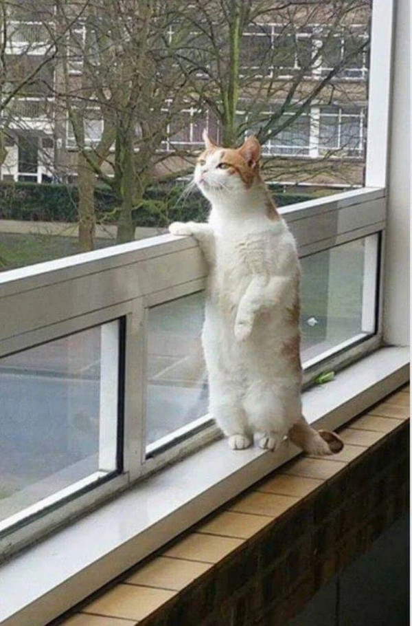 Эти пушистые созерцатели могут часами сидеть у стекла, каждый раз с новым выражением мордашки, начиная с "Когда же обед?" и заканчивая "А что, если я в действительности орёл? Давайте заглянем в их окно и выглянем из него вместе с котейками.
