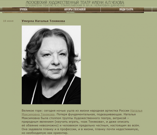 "Она задавала планку и в профессии, и в жизни", - говорится в сообщении МХТ им. А.П. Чехова.Вечная память любимой актрисе Наталье Теняковой.