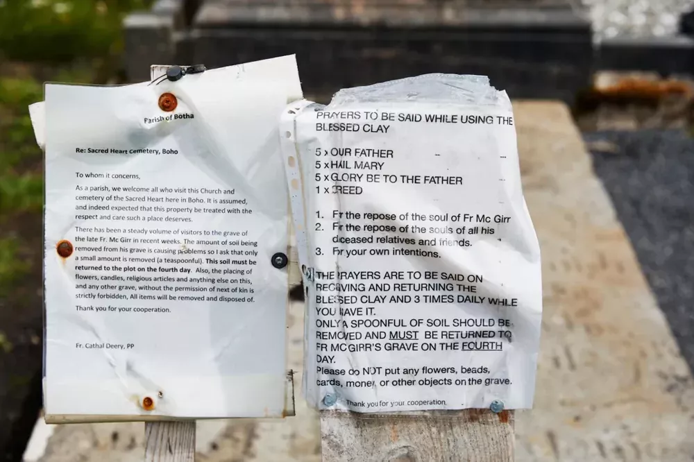 На нагорье Бохо в Северной Ирландии уже более двух веков передают историю о земле, способной исцелять болезни. В 1815 году здесь был похоронен священник Джеймс МакГирр, при жизни славившийся даром врачевания. По преданию, перед смертью он сказал пастве: "Глина, что покроет меня, будет лечить всё, что я исцелял при жизни".