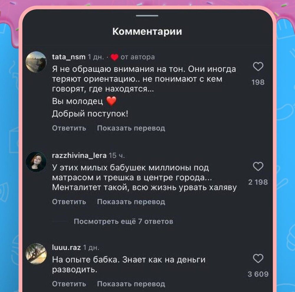 Беспомощную и безденежную старость не пожелаешь никому. Молодую девушку у входа в аптеку остановила старушка на ходунках. Пенсионерка попросила купить ей валидол, а когда девушка согласилась помочь, выкатила целый список нужных ей препаратов. Слегка опешив от непосредственности бабушки, покупательница всё же приобрела лекарства, заметив, что это нужные для здоровья покупки.Правда, девушку смутило, что старушка в конце концов даже не поблагодарила за помощь. Видимо, благотворительность бывает разной. И такой, в том числе.В комментариях усомнились в необходимости помогать таким беспардонным старушкам, заметив, что похоже, бабушка опытная и разводит посетителей аптеки не в первый раз.
