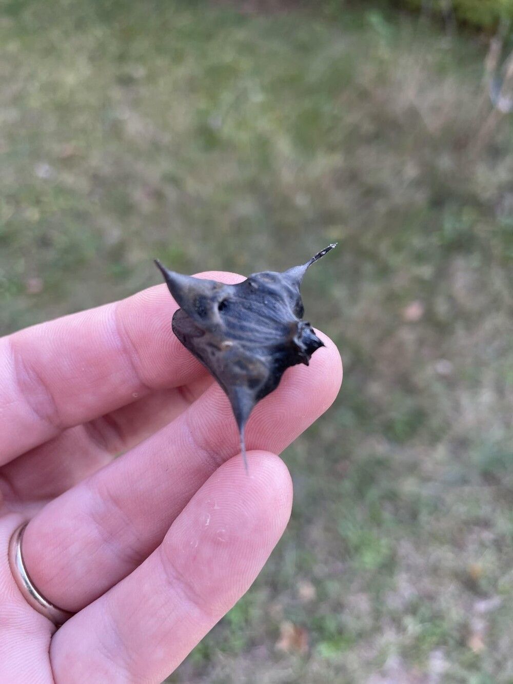 Это водяной каштан, известный также как рогульник, водяной или чёртов орех.