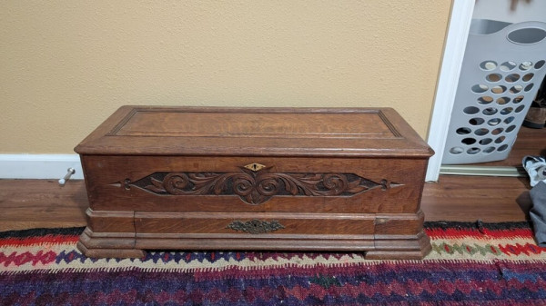 Музыкальная шкатулка. В выдвижной ящичек помещались дополнительные цилиндры с разными мелодиями.