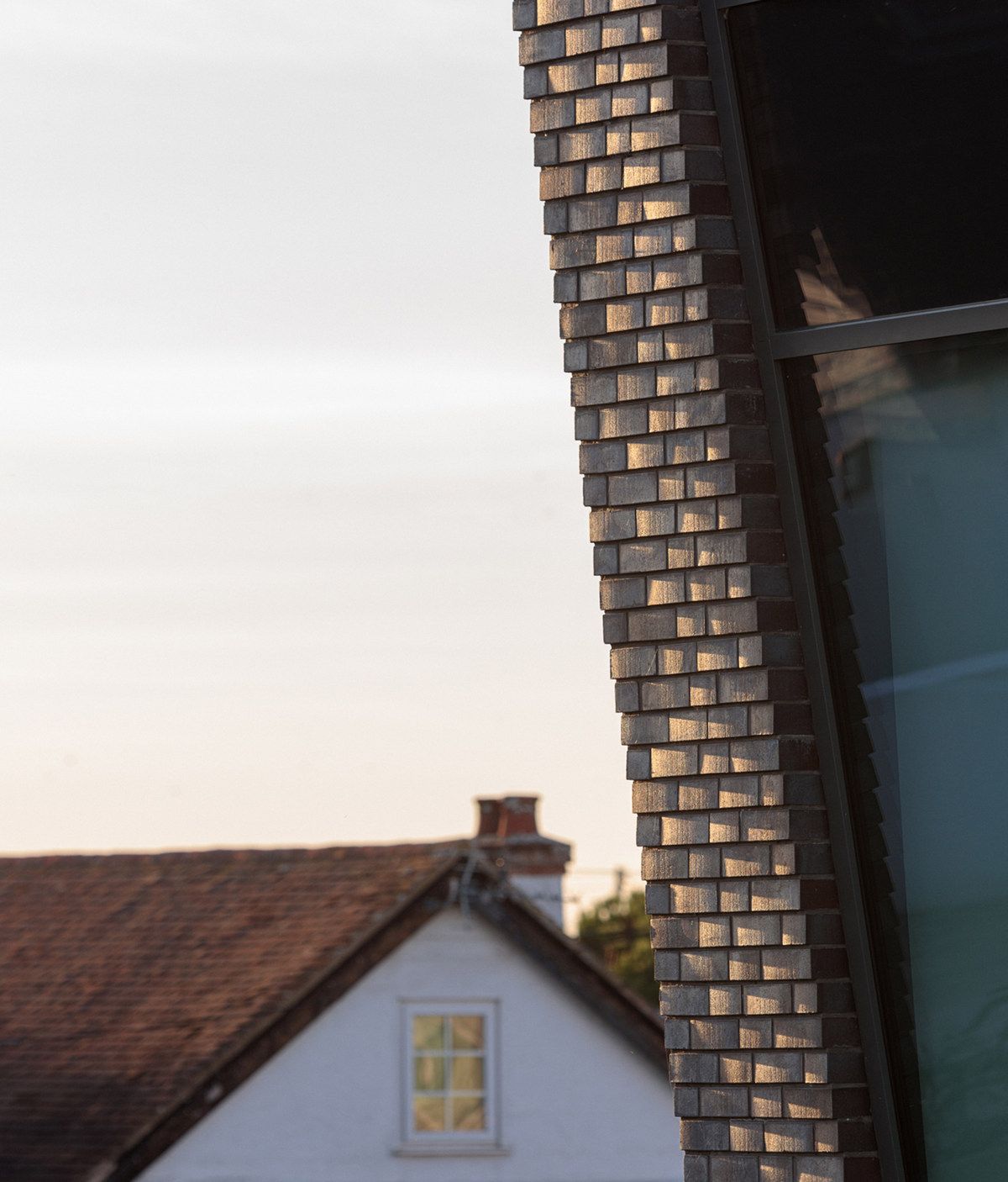 Концепция дизайна этого дома была вдохновлена окружающим ландшафтом, далекими видами на меловые скалы и близостью дороги. Фасад со стороны улицы образован наклонной изогнутой кирпичной кладкой с остеклением, обеспечивающей прочный экран и подчеркивающей изгиб дороги, в то время как остальные фасады имеют обширное остекление с деревянной облицовкой.