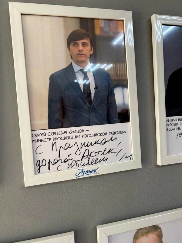 На память чиновник оставил своё фото с автографом, и в официальной прессе об этом не сообщалось. Зато в ряде Телеграм-каналов отметили подарок Кравцова, в подписи которого обнаружили ошибку, неожиданную для министра просвещения и доктора педагогических наук. "С празником, дорогой Артек, с юбилеем", - написал Кравцов, пропустив букву "д" в слове "праздник".