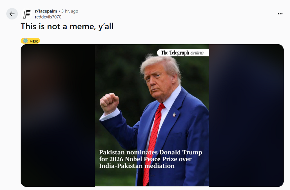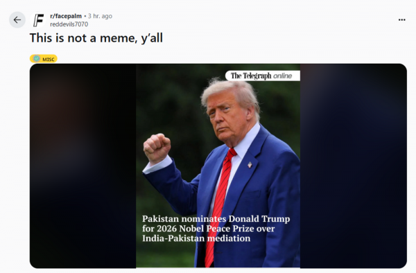 похвастался, что остановил войну. И не войну Израиля против Ирана, нет, не боевые действия хуситов. Войну Руанды против Конго: "Я очень рад сообщить, что вместе с госсекретарем Рубио я договорился о заключении замечательного договора между Конго и Руандой. Их война была известна жестоким кровопролитием и смертями. Она шла. на протяжении десятилетий."После такого откровения Дональд просто не смог не посетовать на бессердечность человечества, не ценящего его заслуги.Власти Руанды и Конго пока еще не поделились своим видением по этому поводу.Кстати, Трамп приоткрыл тайну, почему же ему эту премию пачками не дают, оказывается, чтобы ее получить, необходимо быть... либералом.После такой пламенной речи первым не выдержал Пакистан и выдвинул-таки Трампа на Нобелевскую премию мира-2026. Власти страны отметили ключевую роль Трампа в деэскалации индо-пакистанского кризиса 2025 года.