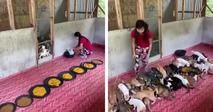 Девушка по имени Эвелин Ампад живёт на Филиппинах и она очень любит кошек, поэтому приводит бездомных из окрестностей к себе домой и заботится о них, независимо от количества.