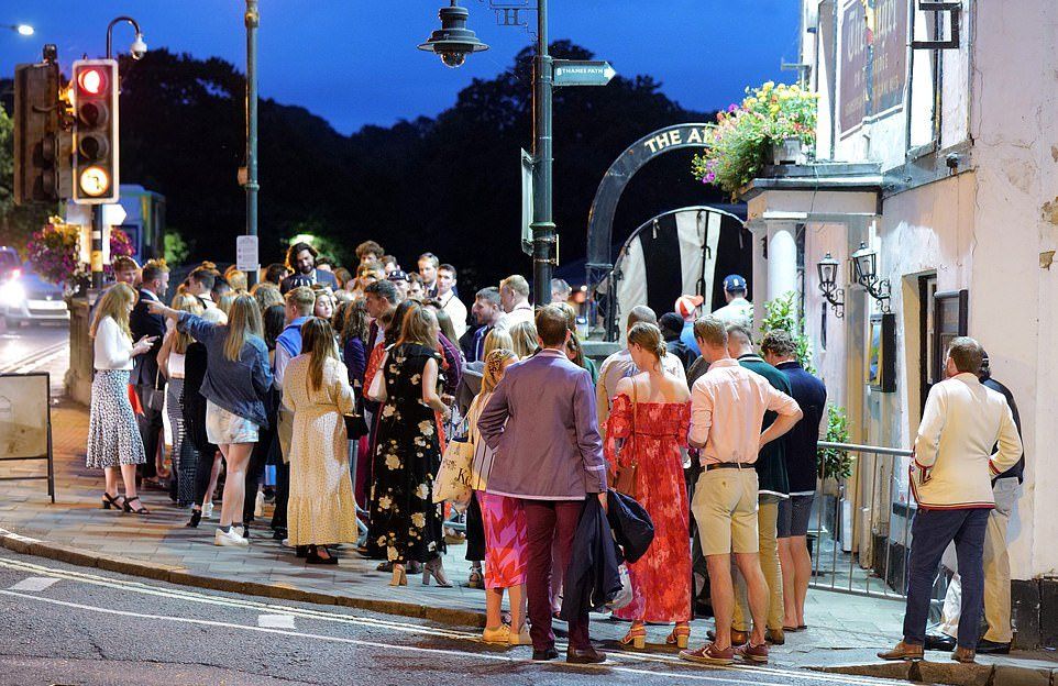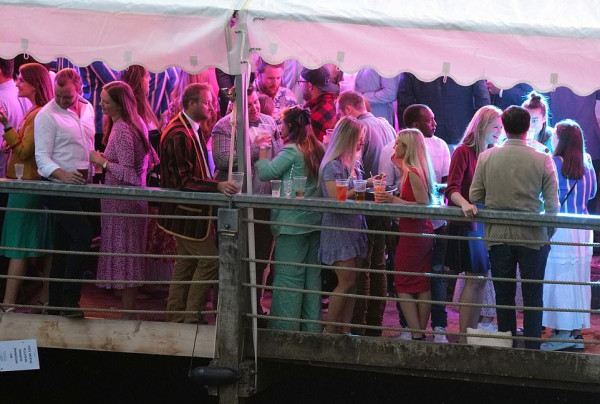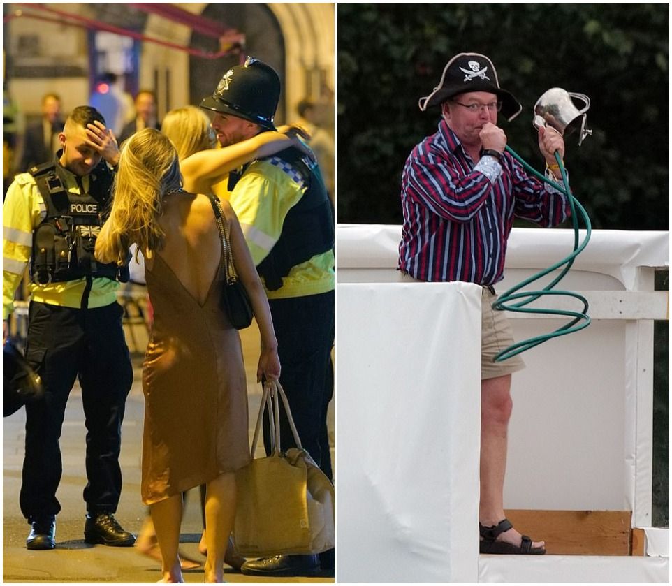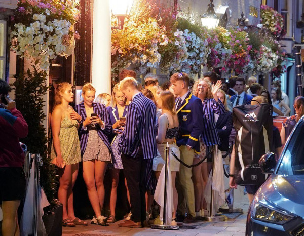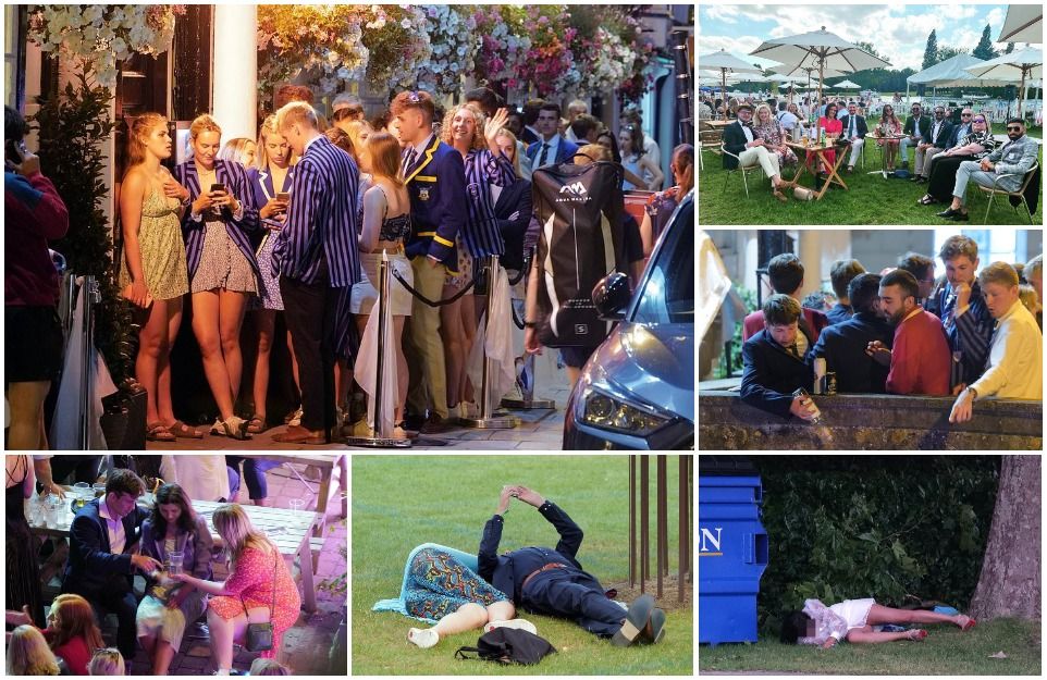 Гуляки появились в приподнятом настроении, когда они провели ночь вне дома, чтобы посетить многочисленные бары и пабы в Хенли-на-Темзе в Оксфордшире, и приготовились праздновать со своими друзьями до рассвета.В другом месте были замечены толпы посетителей, которые наслаждались напитками на берегу Темзы после напряженного дня на гонках.В этом году стало известно, что женщинам разрешено носить брюки на Королевской регате Хенли впервые за ее 182-летнюю историю.На Королевской регате Хенли, которая началась 11 августа, национальные клубы со всей страны соперничали за победу на Темзе в гонках, продлившихся до воскресенья.Организаторы сообщили, что проведут мероприятие как можно безопаснее, в соответствии с правительством и общественным здравоохранением, и те, кто стоит в очереди, должны были доказать, что у них нет коронавируса.Мероприятие привлекает тысячи посетителей в течение пяти дней, а команды соревнуются в более чем 300 гонках международного стандарта на Темзе, в которых могут участвовать олимпийские гребцы, а также экипажи, новые для мероприятия.Впервые регата прошла в 1839 году и с тех пор проводится ежегодно, за исключением двух мировых войн и 2020 года из-за Covid-19.