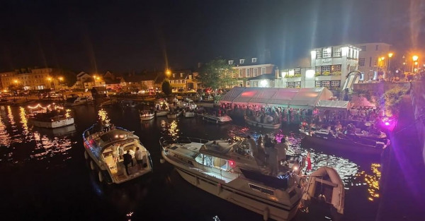 Сотни любителей гребли вышли на улицы, чтобы насладиться ночной прогулкой после того, как они посетили четвертый день Королевской регаты Хенли (Henley Royal Regatta) в этом году.