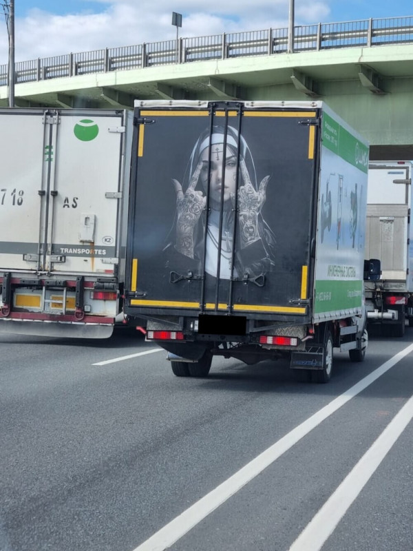 Активисты "Правозащитного центра "Сорок сороков"" отчитались о том, что смогли заставить владельца грузовой "ГАЗели" закрасить оскорбительный рисунок на задних дверях фургона. Отмечается, что небогоугодную аэрографию с татуированной католической монахиней заметила одна из сторонниц движения "Сорок сороков" в субботу на трассе на трассе Москва - Ярославль.Как пишут активисты, в ходе вежливого общения водителя попросили в течение 24 часов удалить рисунок, что мужчина и сделал, закрасив её коричневой краской."Чтобы не портить жизнь водителю, отцу двоих детей, за необдуманный поступок, вежливо попросили его удалить принт в течение 24 часов, на что он культурно согласился", - рассказали в правозащитном центре.