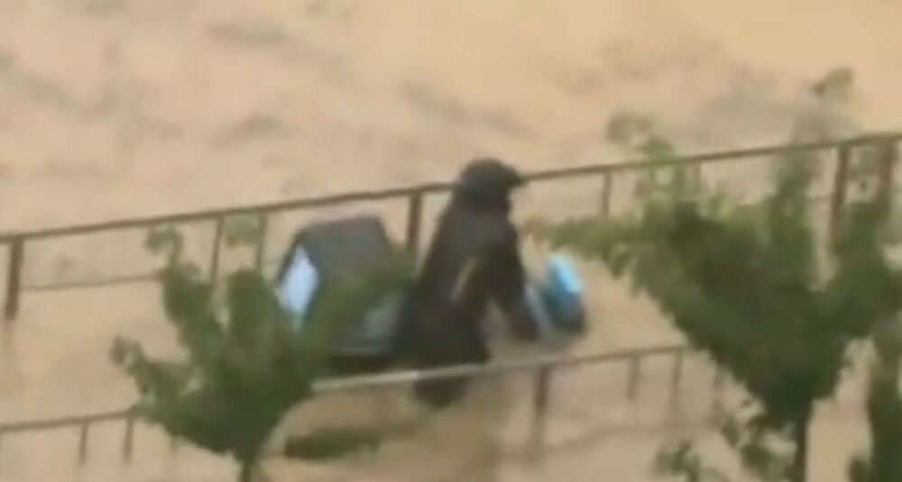 Вместо того чтобы выбрать сухой маршрут, курьер отправился по самому затопленному пути в городе.