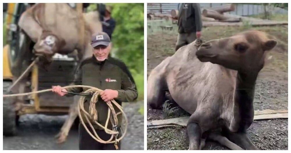 480-килограммовый верблюд Тоша живёт в южном парке птиц "Малинки" и очень не любит перемены. Например, в прошлом году молодой Тоша упёрся и никак не хотел переезжать в новый вольер. В этом году для Тоши запланировали ещё один переезд, на этот раз, казалось бы, очень приятный: в просторный вольер с луговыми полями к трём самкам. Но и тут Тоша заупрямился.Чтобы перевезти верблюда, сотрудники парка использовали широкие стропы и грузоподъёмный кран. Чтобы Тоша сильно не переживал, ему дали немного успокоительного и надели повязку на глаза. В итоге операция по перевозке прошла отлично - Тоша чувствует себя хорошо. Впереди у него досуг с подружками и набор веса: к 5 годам Тоша будет весить уже 500-800 килограммов.