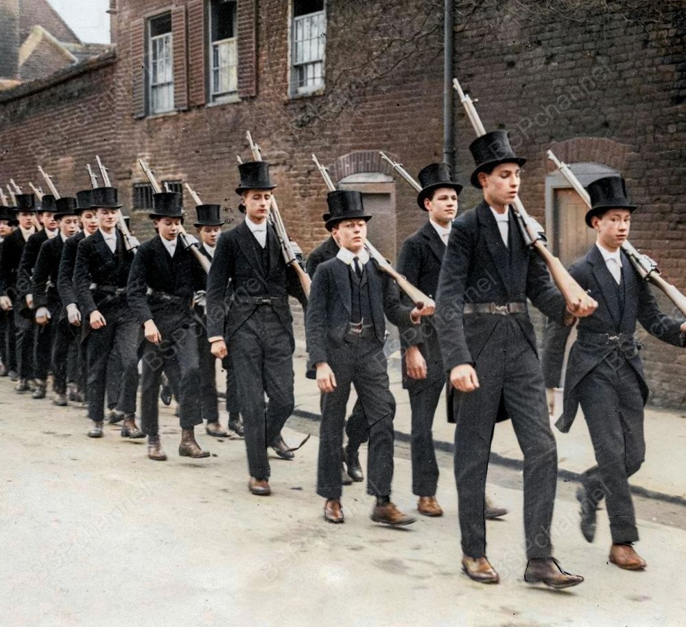 Мобилизованные студенты Итонского колледжа во время Первой мировой войны. Англия, 1915 год.