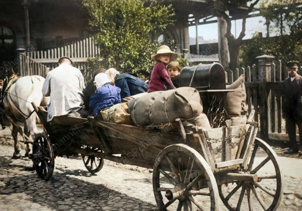 Польские беженцы проезжают Варшаву по пути домой. Первая мировая война, территории Польши, оккупированные немцами, 1915 год.