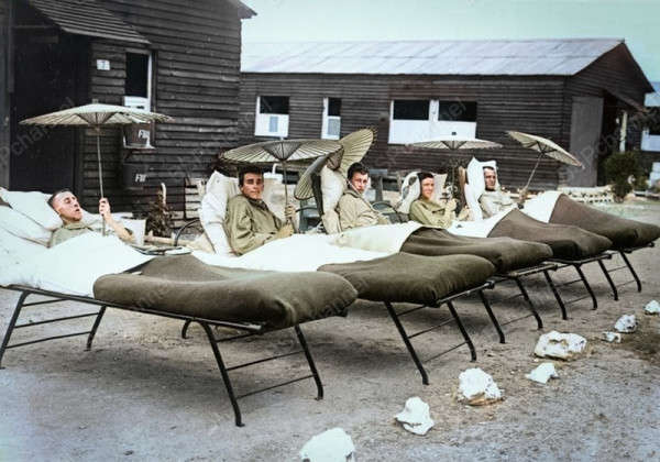 Фотографии, подобные этим делались для развлечения и в пропагандистских целях. Подобные снимки должны были успокоить тех, кто остался дома, и свести на нет более ужасные аспекты войны.