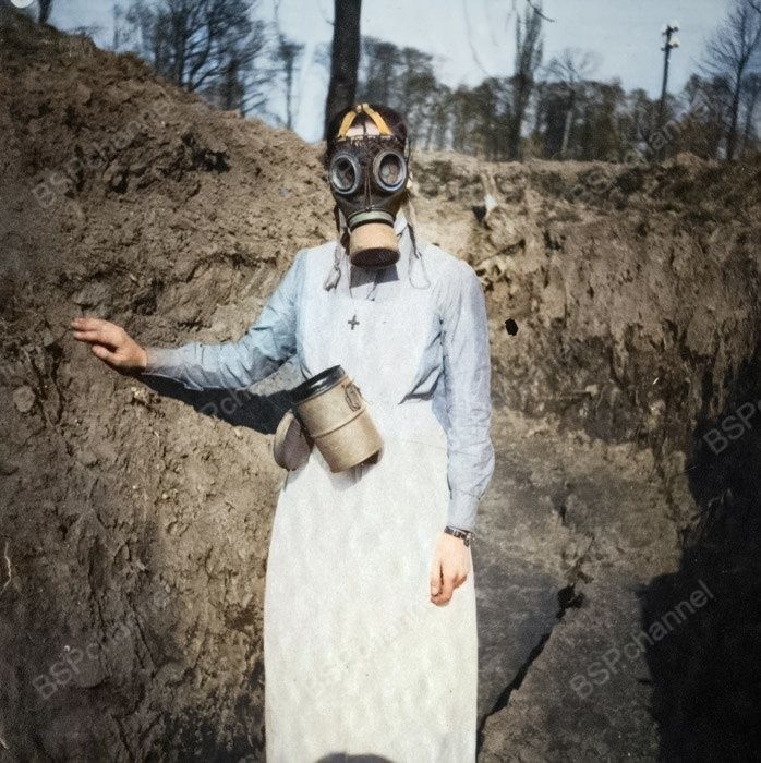 Немецкая медсестра в противогазе. Первая Мировая, 1918 год.