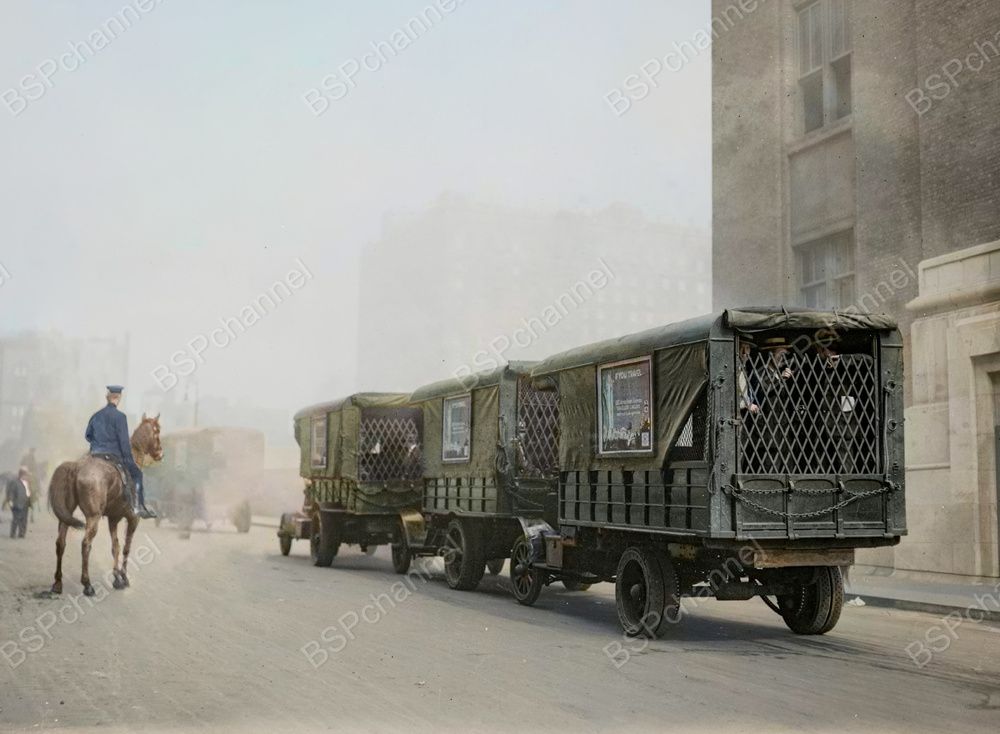 Американские грузовики вывозят золото Великобритании в США во время Первой Мировой войны, 1915 год.