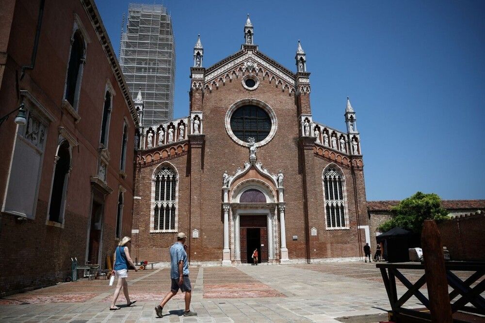Вечером 26 июня знаменитости собрались на праздничное мероприятие в клуатре (это такой окружённый стенами прямоугольный двор при средневековом монастыре или церкви) церкви Мадонна делл'Орто. Власти Венеции ограничили пешеходное движение вокруг собора XIV века, где хранятся работы венецианского художника Тинторетто, с позднего вечера до полуночи.
