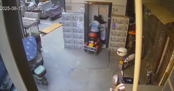 Пожилая женщина не справилась с управлением своего трёхколёсного транспортного средства и случайно съехала в шахту лифта.