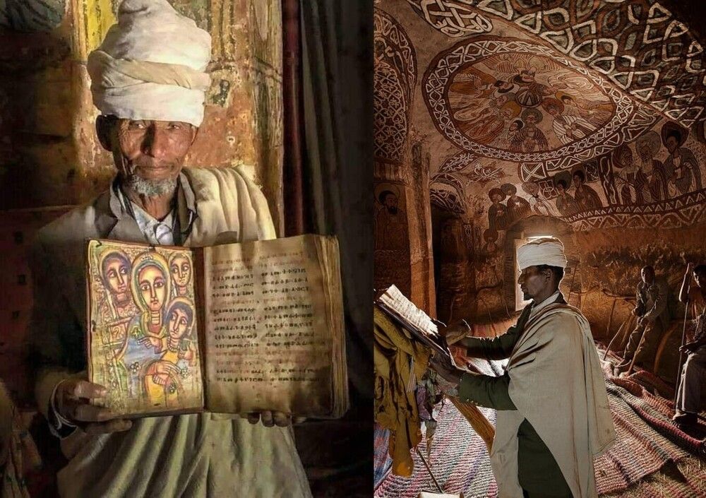 Книга, которой 1500 лет, из Абуна Йемата Гу, монолитной церкви, расположенной в Тыграе в Эфиопии. Храм высечен в скале и считается одним из самых труднодоступных культовых мест планеты.