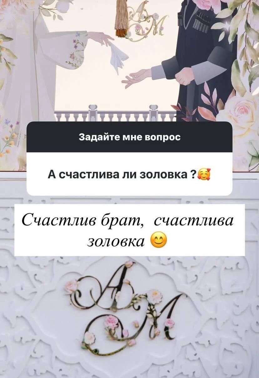 Скорее всего, торжество пройдёт в тесном семейном кругу. Увидеть его не получится. Айшат Кадырова заявила, что не станет делиться с подписчиками фотографиями со свадьбы. По её словам, во время праздника будет не до камеры.