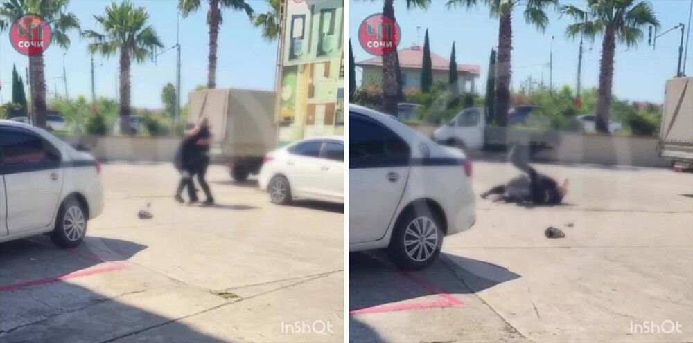 Днём на парковке ТД "Подкова" в селе Весёлое (Сириус) между водителями произошла потасовка из-за парковочного места.