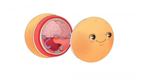 Эксперты официального канала "МГУ имени М. В. Ломоносова" уверены, что все внутренние органы этот персонаж компактно упаковал в сердцевине. Далее идут мышечные слои.Передвигается Колобок благодаря сокращению различных групп мышц, которые меняют центр его тяжести.Покровные и мышечные ткани у Колобка составляют кожно-мускульный мешок - все, как у современных червей. Но, в отличие от червей, Колобок имеет развитый мозг. Ведь у него были неплохие способности к коммуникации.
