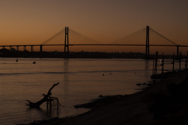 Под угрозой находится обширная экосистема, которая включает в себя питьевую воду для 40 миллионов человек, средства к существованию рыбацких общин и фермеров, а также судоходство крупного экспортного центра зерна.Национальный институт водных ресурсов Аргентины определил низкий уровень воды в реке Парана, которая проходит через Бразилию, Парагвай и Аргентину, как "худший с 1944 года.""Этот природный актив явно дает нам признаки того, что он не бесконечен", - сказал эколог Хорхе Бартоли, координатор организации "El Paraná No Se Toca" (Парана должна оставаться нетронутой).Низкий уровень воды обусловлен рекордной засухой в Бразилии, где начинается река.Средне-западные и южные регионы Бразилии переживают большой водный кризис. Водохранилища, включая гигантскую плотину Итайпу, находятся на самом низком уровне за 91 год, и бразильские власти объявили чрезвычайное предупреждение для пяти штатов: Минас-Жерайс, Гояс, Мату-Гросу-ду-Сул, Сан-Паулу и Парана.Снижение уровня воды является частью естественного цикла, но специалисты предупреждают, что сценарий более экстремальный из-за изменения климата.Экологи говорят, что проблема усугубляется вырубкой лесов.Водный путь реки Парана и ее водоносные горизонты обеспечивают пресной водой около 40 миллионов человек в таких странах, как Бразилия и Аргентина.В свою очередь, она получает воду из реки Парагвай, которая имеет среди своих основных источников район Пантанал, огромное водно-болотное угодье, расположенное в регионе Мату-Гросу на юге Бразилии.Засуха на реке сказывается на перевозке грузов.Гильермо Мигель, президент порта города Росарио, сказал, что суда должны были уменьшить свой тоннаж примерно на 20%, чтобы продолжить движение. По его словам, транспортные расходы растут.По данным городской фондовой биржи, в 2019 году из Росарио было экспортировано 79 миллионов тонн зерна, муки и масла, что сделало его одним из крупнейших центров экспорта сельскохозяйственной продукции в мире.