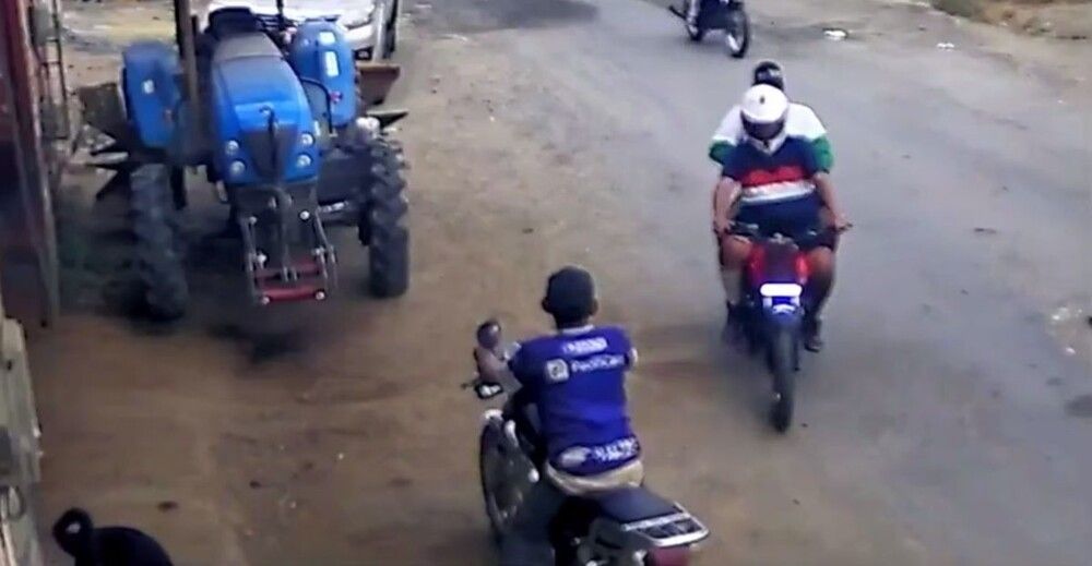 Камера наблюдения, установленная на территории населённого пункта в Эквадоре, запечатлела попытку грабежа. К владельцу мотоцикла подъехали двое мужчин и попытались завладеть двухколёсным транспортным средством.