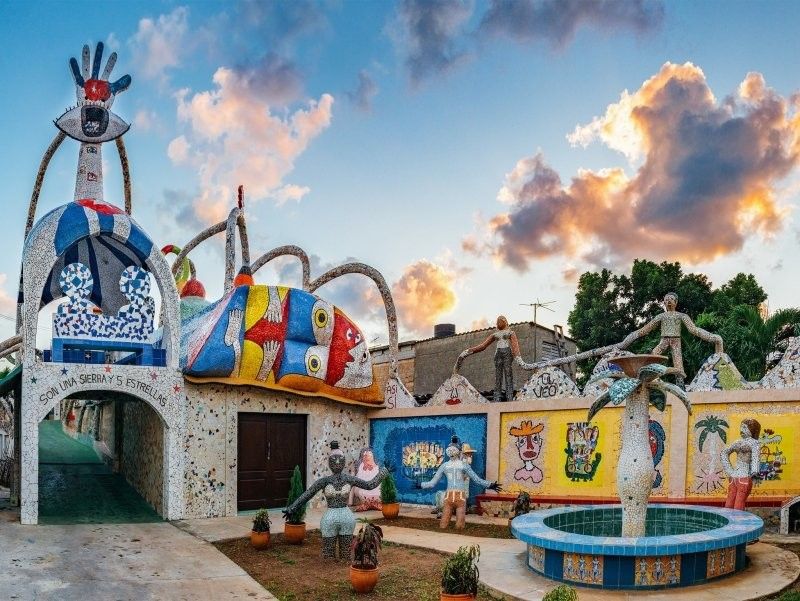 В 1975 году он поселился в Хайманитасе - бедном районе на окраине Гаваны, где дома едва держались на честном слове. Сперва Фустер украсил собственную мастерскую яркой мозаикой. Потом предложил соседям декорировать и их дома. Некоторые согласились. Так постепенно, шаг за шагом, скромный квартал начал преображаться. Автобусные остановки превратились в арт-объекты. Лавочки и фонтаны ожили под слоем керамики. Даже кабинеты врачей стали похожи на декорации к сказке. Десять лет спустя Хайманитас было не узнать.