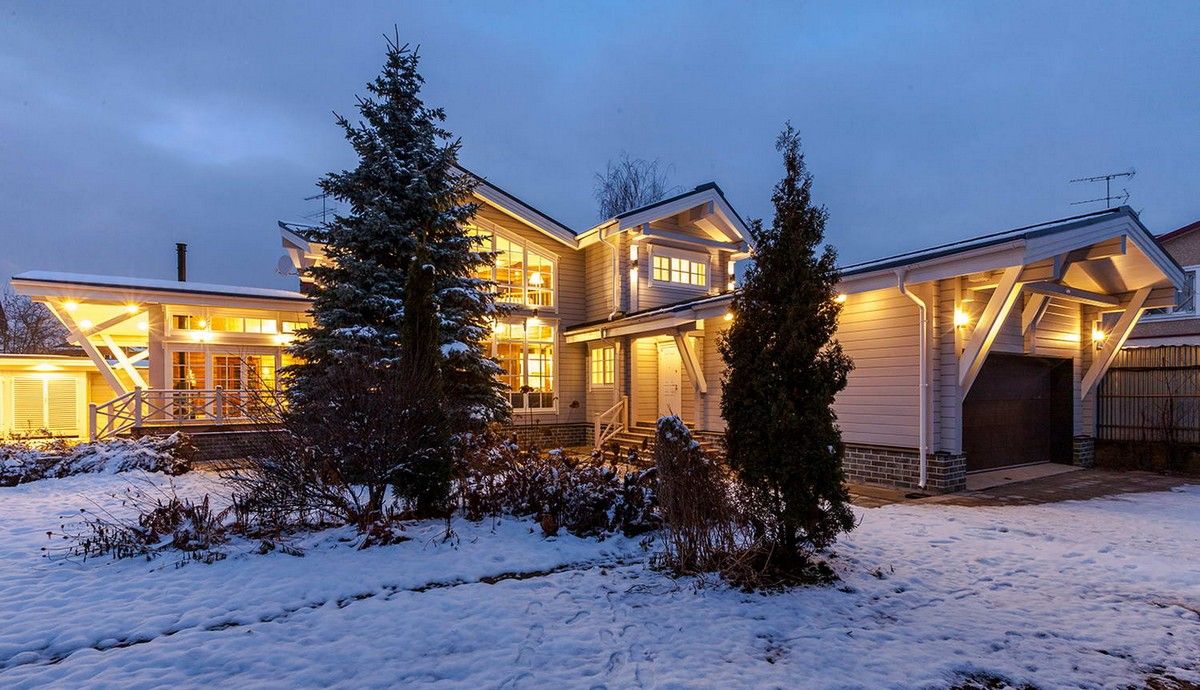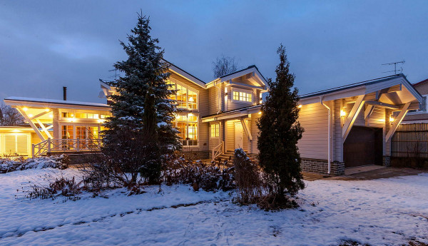 Красивый и современный дом из клееного бруса "Романсия" создан без оглядки на традиционные каноны строительства и многим может напомнить проекты известных западных архитекторов.