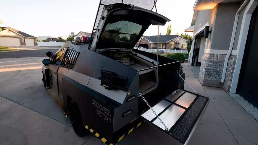 Создатель очередной кустарной копии Cybertruck, владелец транспортной фирмы Джонни Ланге из Юты за основу взял сильно подержанный Toyota Prius 2004 года выпуска с пробегом свыше 200 тыс. миль. Демонтировав капот и наружные панели, он сварил скелет из стальных труб квадратного профиля, водрузив его на шасси донора. Снаружи каркас обшит алюминиевыми листами. Завершает образ светодиодная оптика неизвестного происхождения и чёрные спицованные диски.