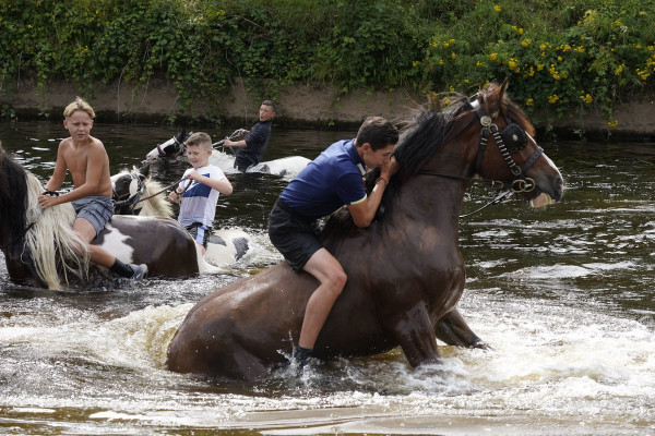 Тысячи путешественников со всей Великобритании оседлали традиционные повозки с лошадьми и луком, направляясь на ярмарку лошадей в Эпплби после того, как прошлогодний фестиваль был приостановлен из-за коронавируса.