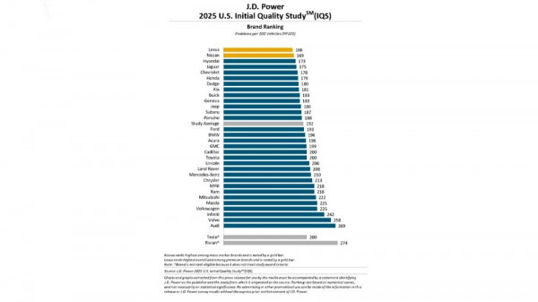Аналитическая компания J. D. Power опубликовала итоги традиционного исследования качества новых автомобилей, которое проводится на основе опроса владельцев машин не старше 90 дней. На первое место в премиальном сегменте выбилась марка Lexus, а бренд Ram, ранее лидировавший среди массовых машин, откатился на 25-ю позицию. В целом, как отметили аналитики, качество новых авто слегка подросло.