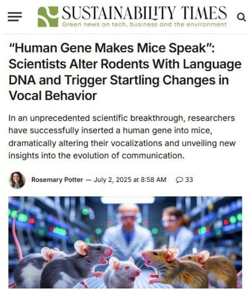 Представьте себе: вы просыпаетесь утром, а вместо привычного писка мыши начинают издавать сложные звуки, словно пытаются что-то сказать. Именно это и произошло в лаборатории института Рокфеллера, где ученые решили провести эксперимент, который мог бы изменить наше понимание эволюции речи.Исследователи решили внедрить в организм мышей человеческий ген NOVA1, который, как известно, играет важную роль в развитии речи у людей. Он встречается у всех живых существ, но только у человека замечена уникальная его модификация, которой, как полагает наука, мы все обязаны членораздельной речью. Этот ген, по мнению ученых, мог бы повлиять на голосовые сигналы грызунов, сделав их более сложными. И, как оказалось, они не ошиблись.