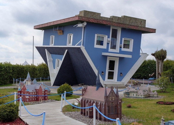 Этот голубой домик в стиле кейп-код на острове Узедом выглядит как типичное приморское жильё: скамейки в саду, гравийная дорожка, тачка и велосипед у входа. Но есть одна важная деталь - он стоит вверх ногами.Построенный в 2008 году, этот необычный аттракцион предлагает посетителям взглянуть на жизнь с нового ракурса. В прямом смысле. Войдя через чердак (который теперь находится внизу), гости оказываются в полностью обставленном доме, где ходят по потолку, а мебель "висит" над головой.Для усиления эффекта здание немного наклонено, поэтому, выходя обратно в нормальный мир, люди ещё несколько минут чувствуют лёгкое головокружение.