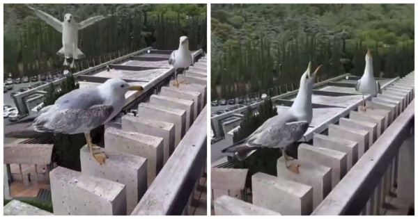 В Крыму запечатлели чаек, "смеющих" над своим неудачливым сородичем. Пернатый не смог нормально сесть и упал.