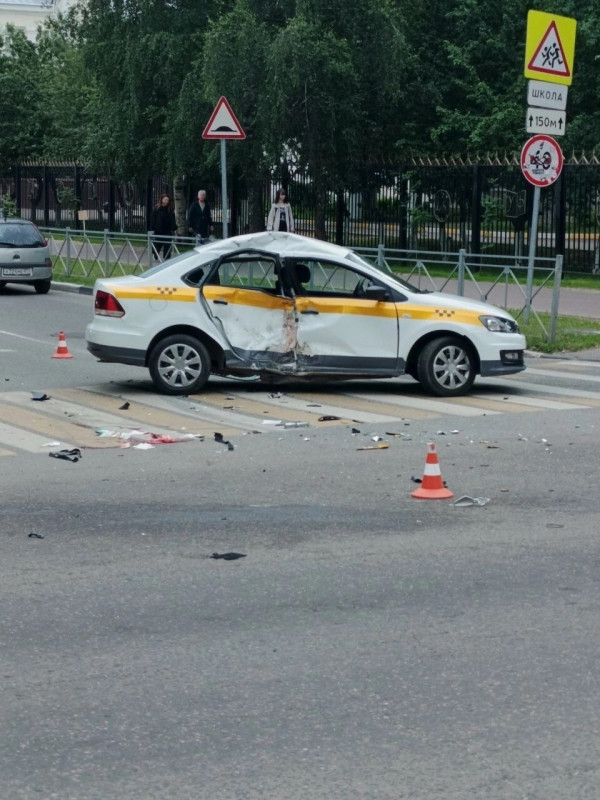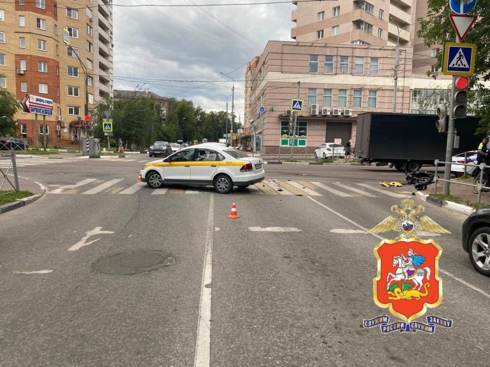 Автомобиль такси проехал на красный и поймал мотоциклиста