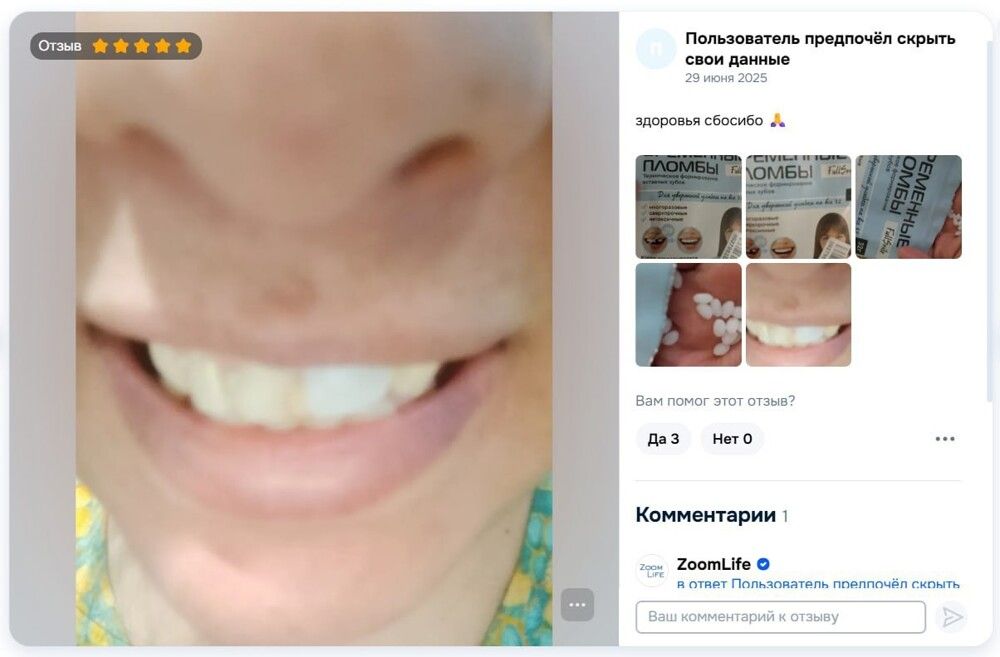 Главный врач стоматологической клиники "Лючидус" Вячеслав Глухов считает покупку таких комплектов для самостоятельного пломбирования зубов - прямым путём к серьёзным проблемам. Во-первых, совершенно неясно, из какого материала состоит "ремкомплект", прошёл ли он испытания, является ли безопасным для здоровья человека. Во-вторых, никогда нельзя знать наперёд об индивидуальной реакции организма на состав, который постоянно находится во рту. В третьих, самопломбирование может вызвать разрушение зуба, воспаление и нагноение десны, ведь запечатывание кариеса лишь консервирует инфекцию внутри зуба, а не избавляется от неё.