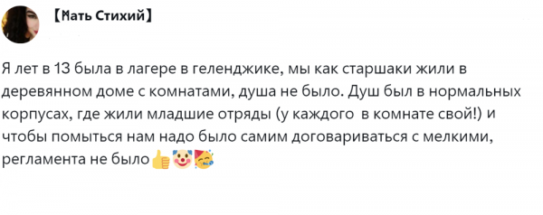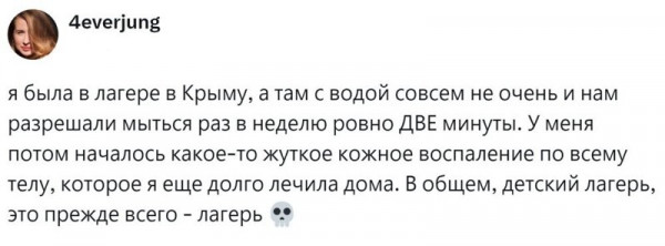 А какие воспоминания у вас остались об отдыхе в детском лагере? Отправляете своего ребёнка в современные или предпочитаете альтернативу в виде дачи, родственников в деревне или санатория?