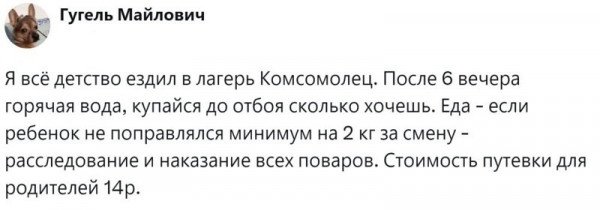 Популярным вариантом выступают летние лагеря. Но у них есть как сторонники, считающие, что коллективный отдых идёт на пользу здоровью и помогает уменьшить количество времени залипания в телефоне, так и противники. Они в качестве аргументов приводят такие доводы как некачественное питание, скучный досуг, слабая подготовленность персонала. А ещё с ужасом вспоминают своё детство, проведённое в лагерях, со всеми вытекающими. Но не все: у некоторых пользователей воспоминания о пионерском лете исключительно тёплые и светлые.