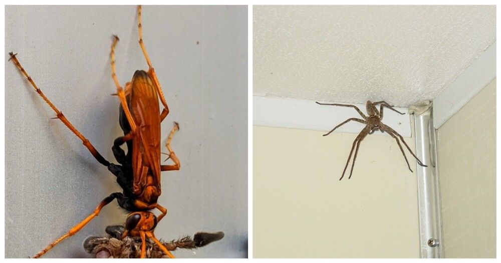 На фото ниже крупная оса парализовала ядом гигантского паука-охотника и утаскивает его к себе в логово, чтобы отложить в него яйцо.Когда личинка вылупится из яйца, то начнёт пожирать парализованного паука изнутри, оставляя жизненно важные органы напоследок, чтобы сохранить добычу живой как можно дольше.