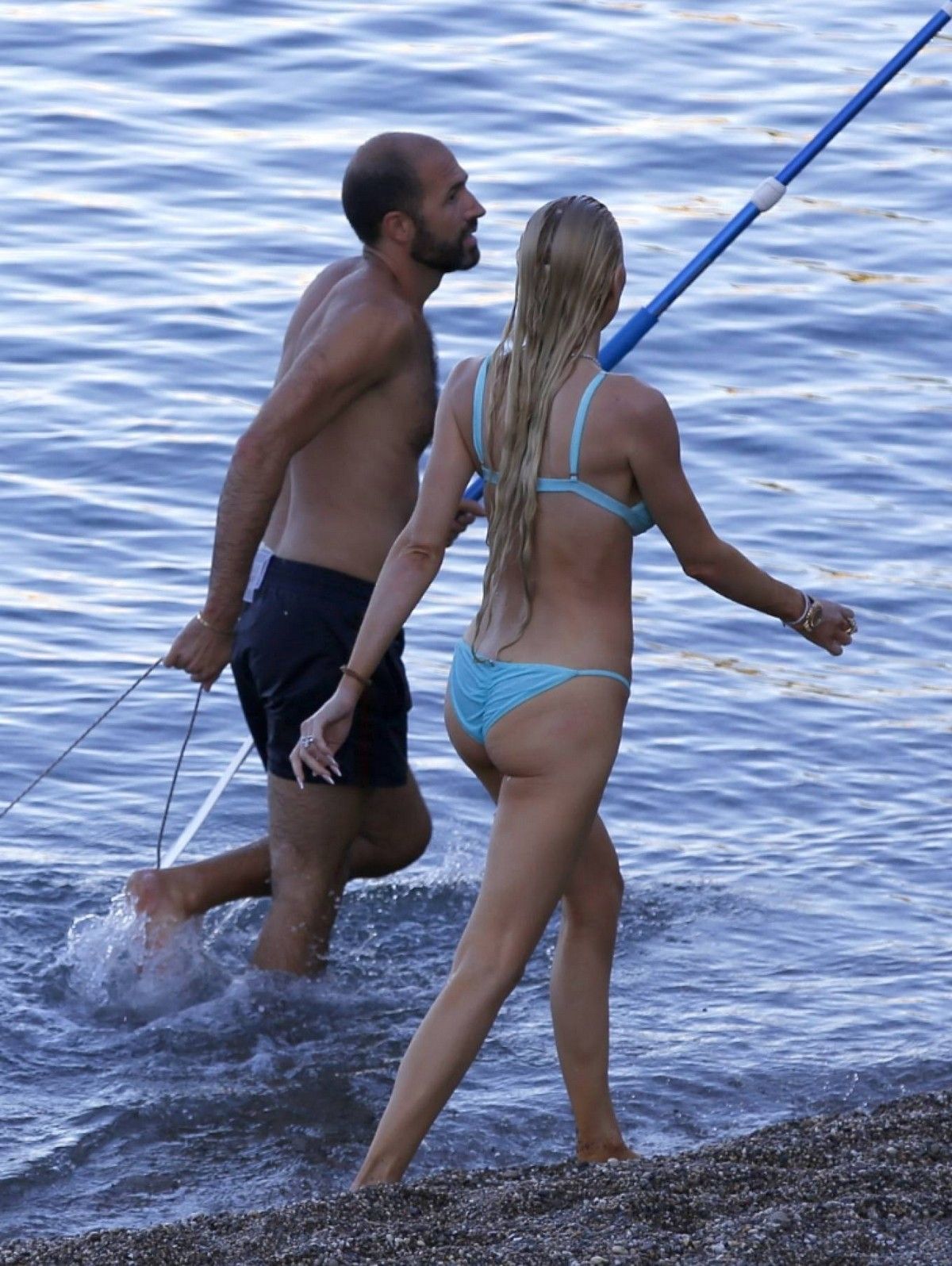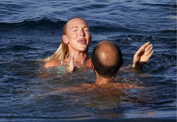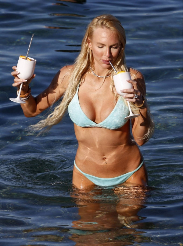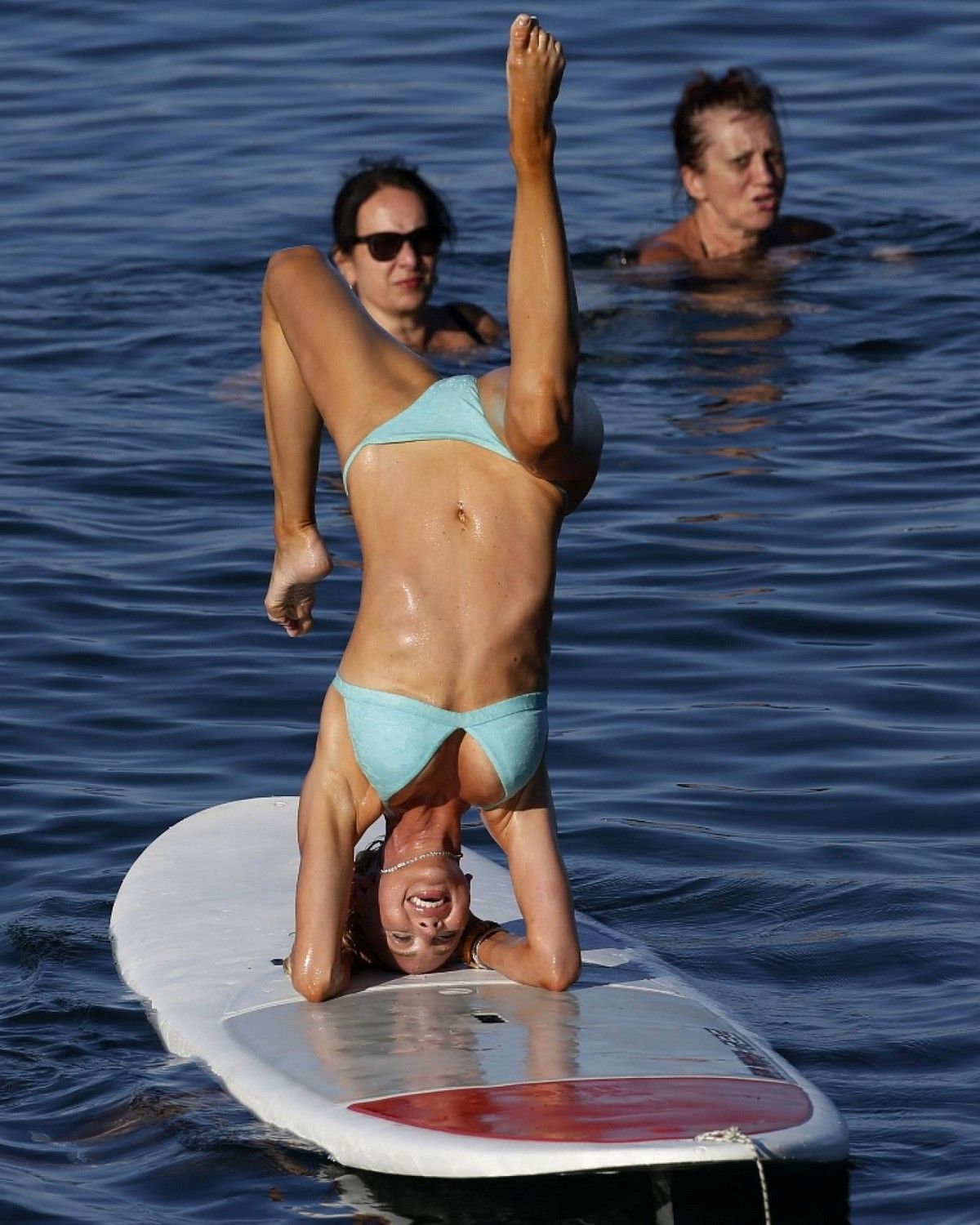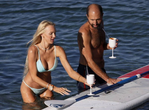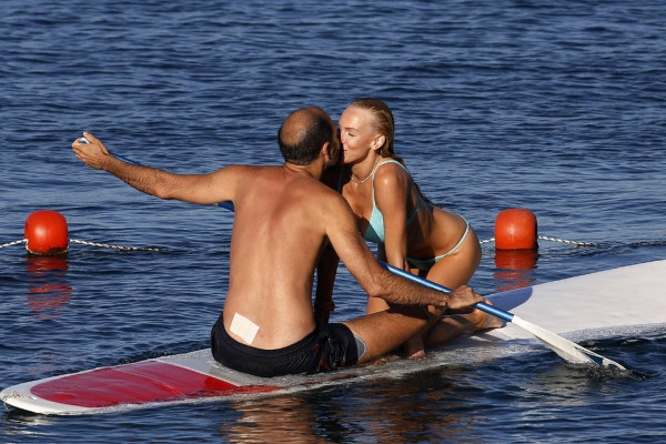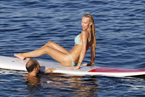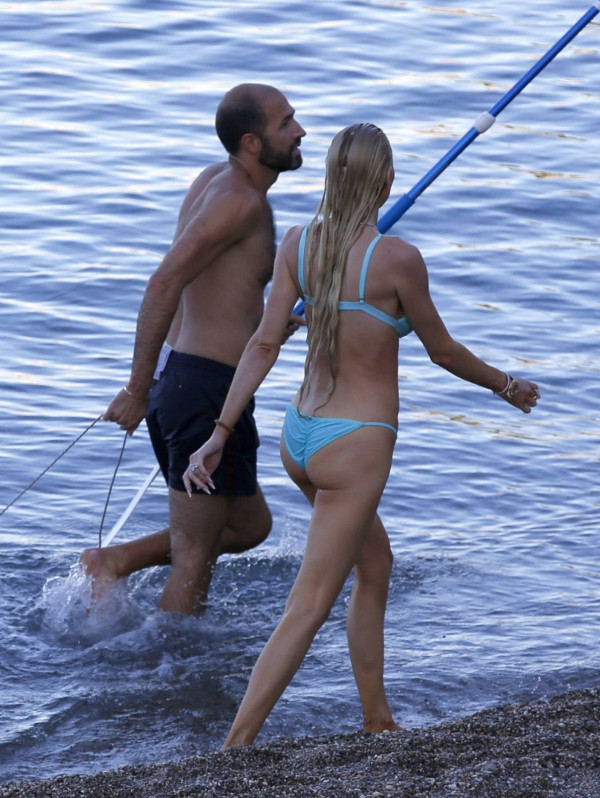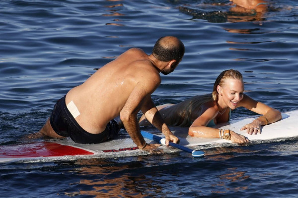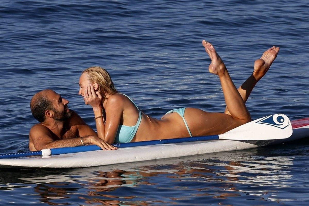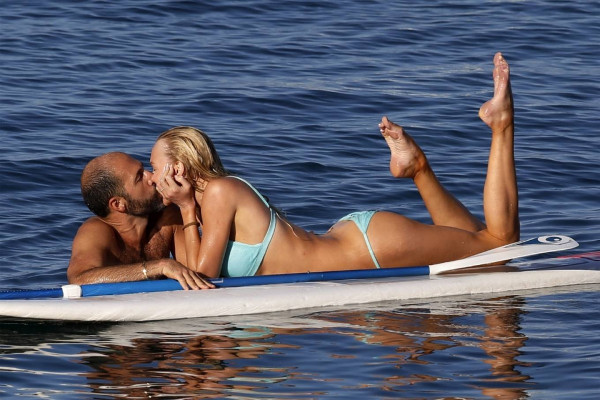 31-летняя американская модель и актриса Кристин Куинн (Christine Quinn) занимается йогой на доске во время отдыха с мужем в Таормине, Италия.