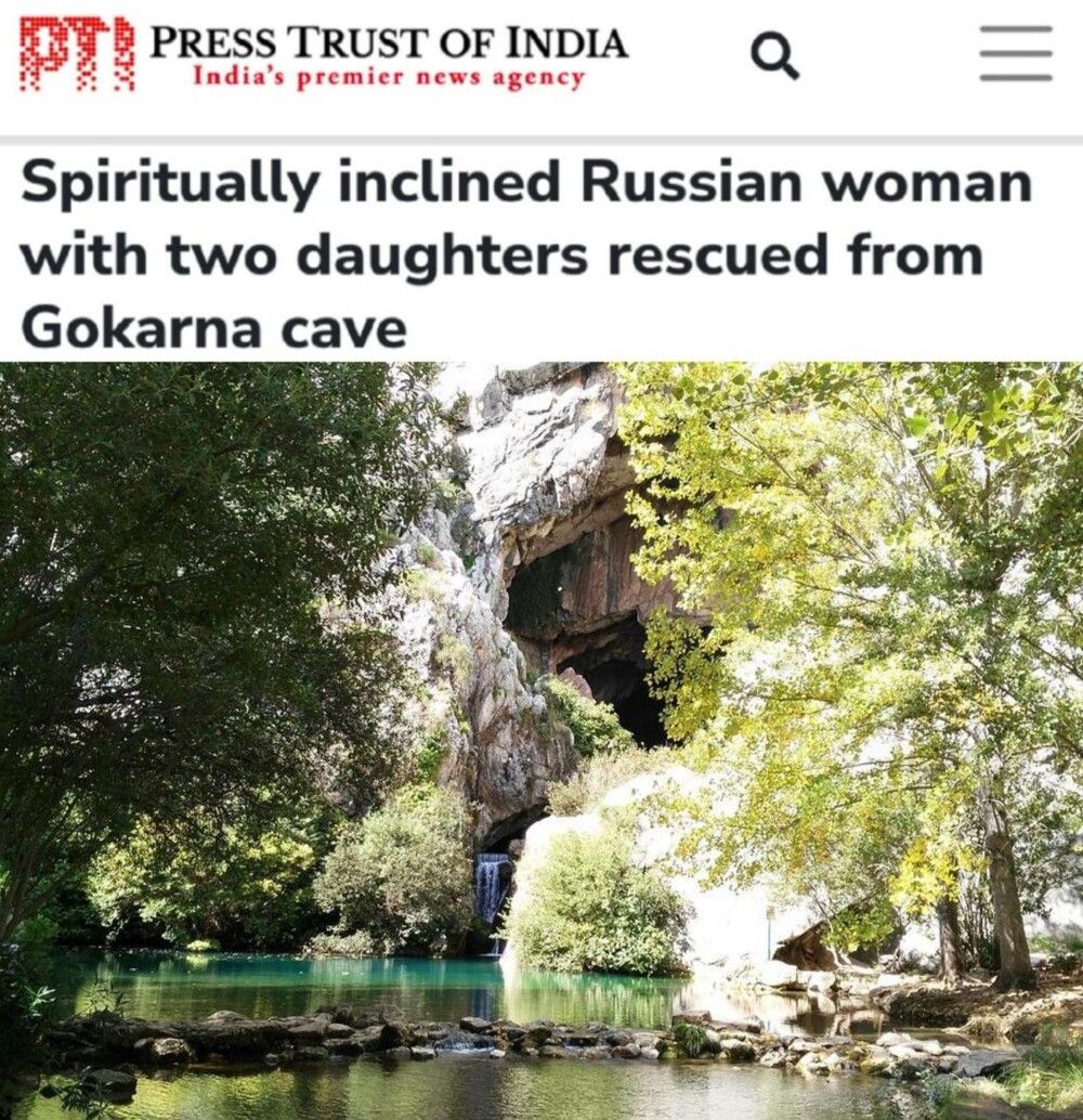 Полицейские Карнатаки, обследуя холмы после оползня, наткнулись на подозрительную "сушилку" у входа в пещеру - детские вещи болтались на верёвке, словно флаги духовного ретрита. Внутри их ждал сюрприз: россиянка Нина (она же "Мохи" - "волшебная" на хинди, хотя волшебства в этой истории было немного), её две дочки дошкольного возраста (6 и 4 года) и идол Рудры, который, судя по всему, исполнял роль няни.